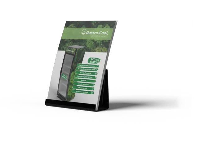 La «nevera ecológica» de Gastro-Cool destaca en términos de equilibrio ecológico gracias a su refrigerante R600a, respetuoso con el medio ambiente. El nuevo producto estrella de la empresa también utiliza un sistema de iluminación LED extremadamente económico, además de un compresor y un ventilador de aire de bajo consumo. La puerta de cierre automático con junta magnética garantiza tiempos de apertura cortos y pocas fugas de frío del interior de la nevera. La alta calidad de fabricación, una cerradura para el refrigerador y un precio de venta asequible completan las características del «protector medioambiental» ECO STAR, eficaz desde el punto de vista promocional y claramente refrigerante.